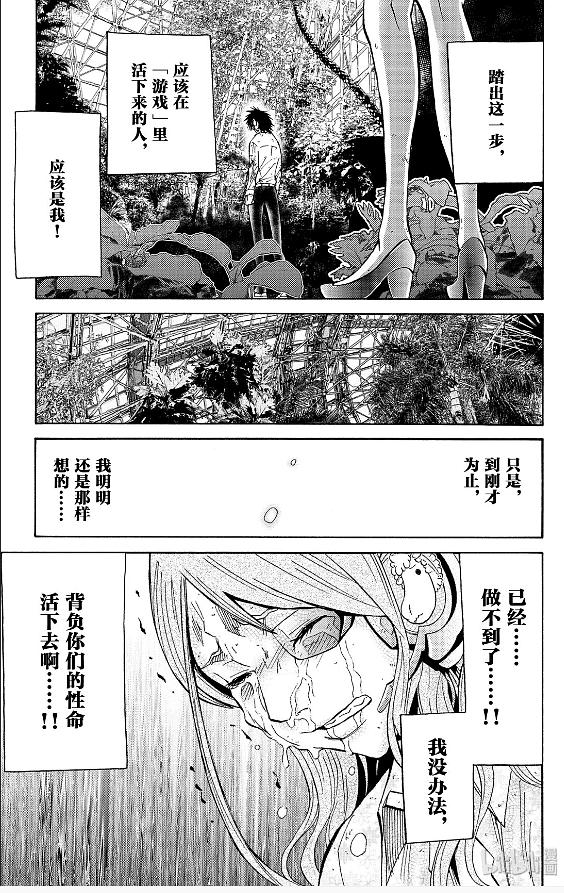 以上基本上是主线剧情,跳过了所有的特别篇。像TV版的公交车终点游戏,就是特别篇里面的。期间还有一些游戏,比如说苣屋的21点,日本麻将,监狱游戏等等,都没有详细讲。 感兴趣的还是去看漫画吧。 估计tv版第二季压缩剧情还是能拍完的,并且以tv版的尿性,肯定会改动比较大。漫画版有很多逻辑上的bug,比如说非常谨慎的梅花K最后选择和有栖握手?比如说在tv版会听宇佐木话不喝半路补给水的有栖,会在面对最终boss未来的时候,喝她那明显下了药的咖啡?比如说方块K九头龙慧一在必赢的局势下,被苣屋嘴炮给说服了。