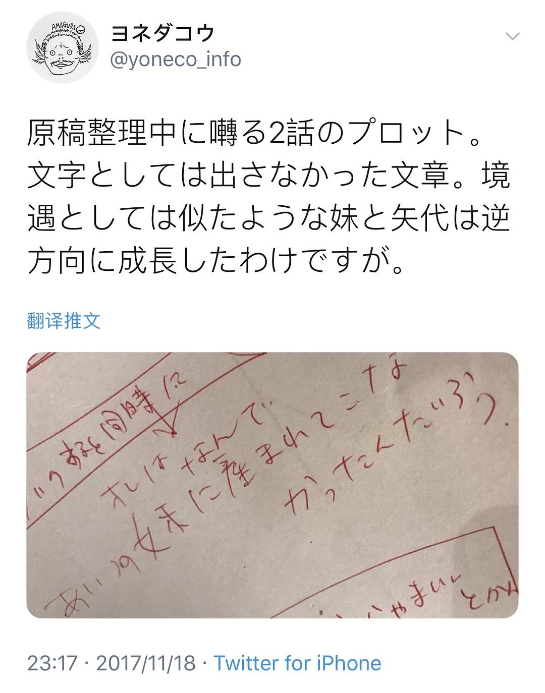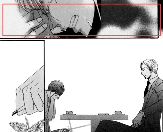 矢代在与葵的交谈中发现了原来他们俩人是如此相像,都爱着一个永远不会爱上自己的人。漫画中在葵痛哭时,插入了一格当年他为了影山流泪的画面,动画中也回忆了他与影山在一起的时光。作者曾经在推特上表示一开始是想加入一段矢代内心独白的台词的,但最后放弃了,但我个人感觉作者之后把与这段相呼应的台词放在了33话。