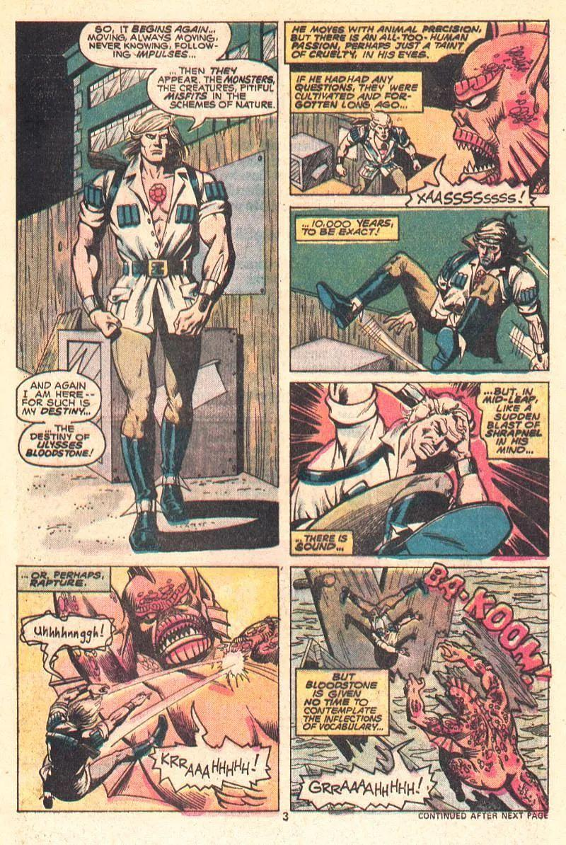 尤利西斯·血石在漫画中被欺骗,回收跨维度恶魔操控坠落在地球的陨石,之后陨石内的血石碎片留在他的胸口,让他有了超能力,成为知名的怪物猎人。