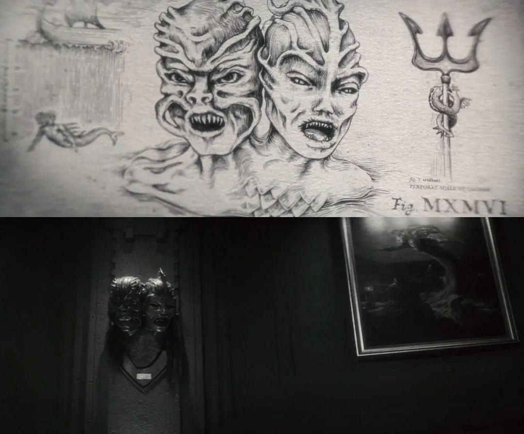 仔细看艾尔莎走进来时,墙壁有一个砖疑似刻着一张地图,这个地图或许是之后他们进入狩猎现场的后花园迷宫地图。