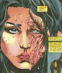 由于是他的妻子艾伦带领AIM袭击的他,所以他烧伤了艾伦半张脸报仇。
