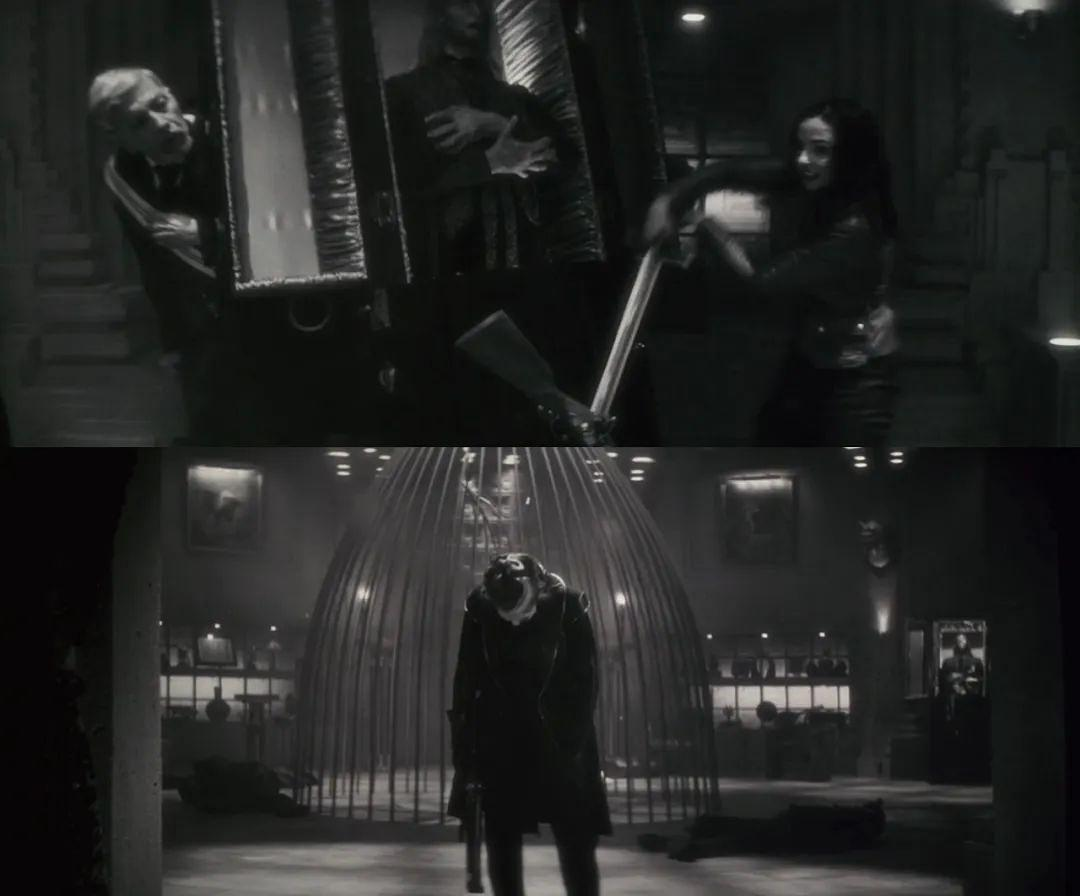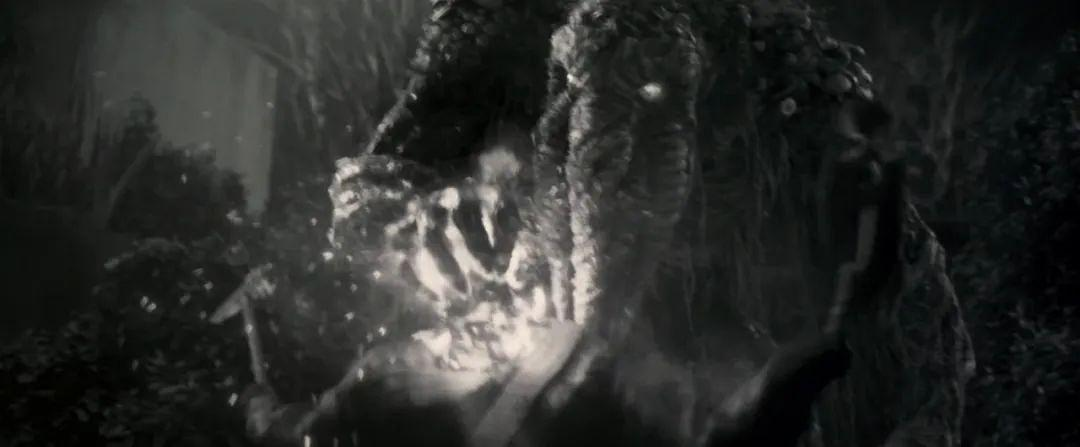 杰克经过血石时,只有血石泛着红光,其他则是黑白,但这并不代表着之后飙出的血是红色的,据说漫威也是因为想给影片降到TV-14,所以采用复古黑白,这样看起来没那么血腥。