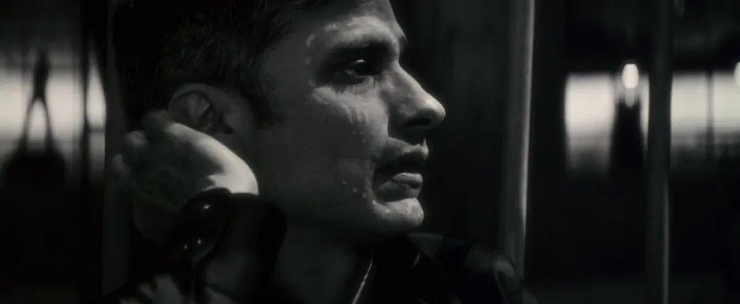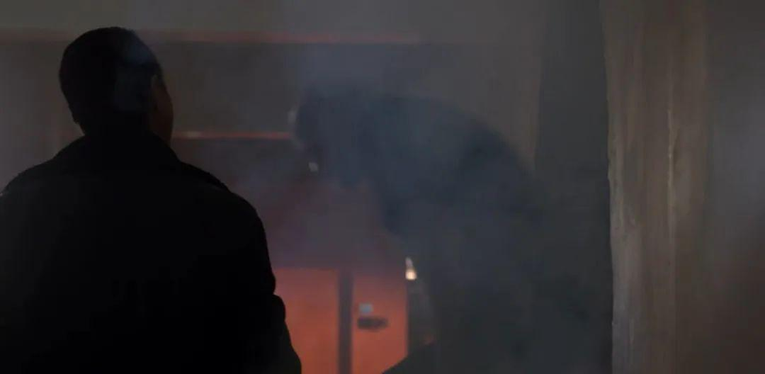 就在胡子男骂骂咧咧时,画面右上角有个黑点灼烧的标记,看过《搏击俱乐部》的大伙伴应该很熟悉,不过这里可以理解为是记录一部影片分章节的印记,影片到这里,完成了一个章节,进入下一个,之后这个印记还会继续出现。