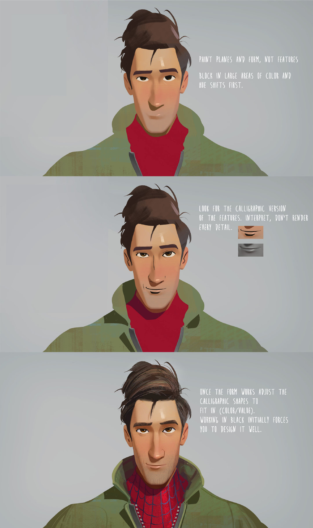 (2/5)Robh Ruppel 给《蜘蛛侠:平行宇宙》绘制的人物和场景设定,绘制过程