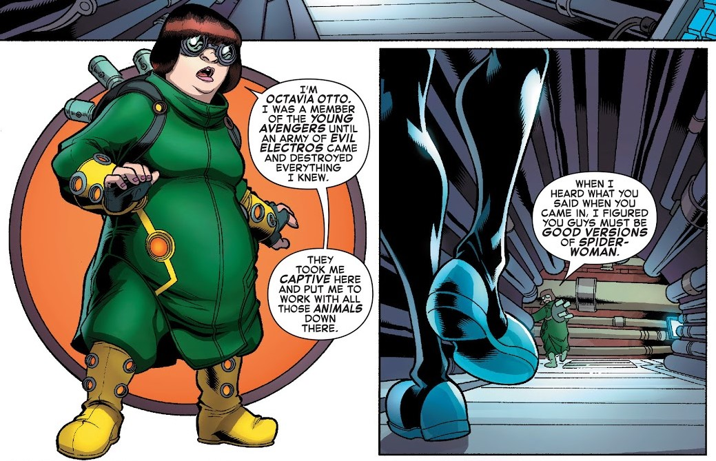n来自Earth-65的格温则有完全不同的起源故事。在这个宇宙中,格温意外被一只放射性蜘蛛咬伤,从此得到蜘蛛力量,成为纽约市的义警女侠“蜘蛛女”(Spider-Woman)。