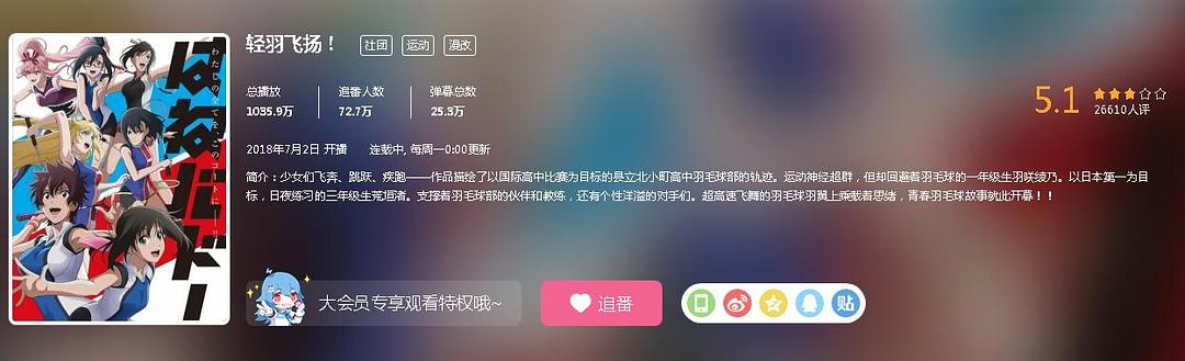这大概是我看得最纠结的一部番了吧……本来,它的开篇几集还是相当惊艳的,只是不知为何中后期的剧情发展开始越发诡异了起来。现在我有点想弃了,但又舍不得这么精良的画质,刻画得相当真实的比赛场景和细腻的心理描写。想追,但又实在无法忍受这完全没有起承转合又难受得一匹的剧情(尤其是女主亲妈那清奇的脑回路)。讲真,这剧情让我完全无法体会到当初我打羽毛球时的那种快乐,因为——所有人都在“自闭”!几乎所有的主要人物都在顶着一张苦大仇深的脸一遍又一遍地说:“我到底是为什么来打羽毛球的”!