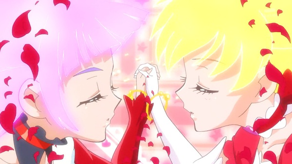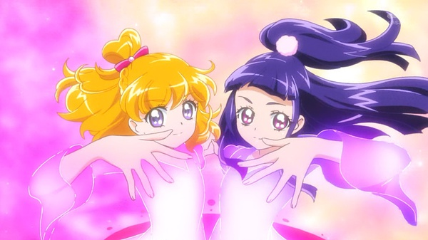 谈到内藤P关于这次法Q想要着重描写的部分时,内藤P表示本作最引人注目的要点为主角是两个人并且需要“手をつなぐ(牵手)”才能变身。而这牵手就如字面上的意思通过手与手的接触合二为一,让彼此内心相通互相理解。一个身为人间界的孩子,一个身为魔法界的孩子,两人的性格以及立场都大不相同,通过牵手来互相理解互相认可对方,通过牵手弱小的力量也能变成一股强大的力量。虽然各不相同,但正是因为不一样才显得有趣,并且通过认可互相的不同点,认可这种多样性,令自己的视野变得更加宽广。内藤P透露本次想要通过各种各样的“牵手”来描写魔法使这一满载幻想感的故事。而就动画目前看来,不管是变身还是大招,甚至在打斗途中两人的确都是处于牵手的状态~