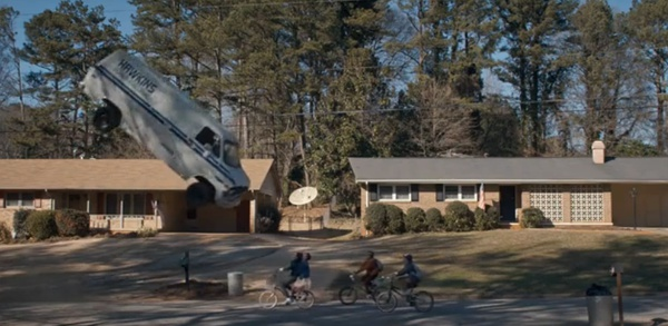 八十年代背景,自行车,一群小男孩和一个女孩和一个吃人怪物——超级8。