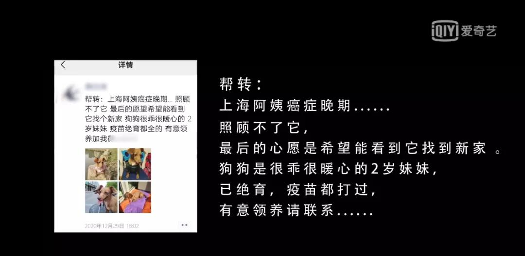另一个,是上海患癌的阿姨为她的爱犬丽丽寻找领养家庭的故事。