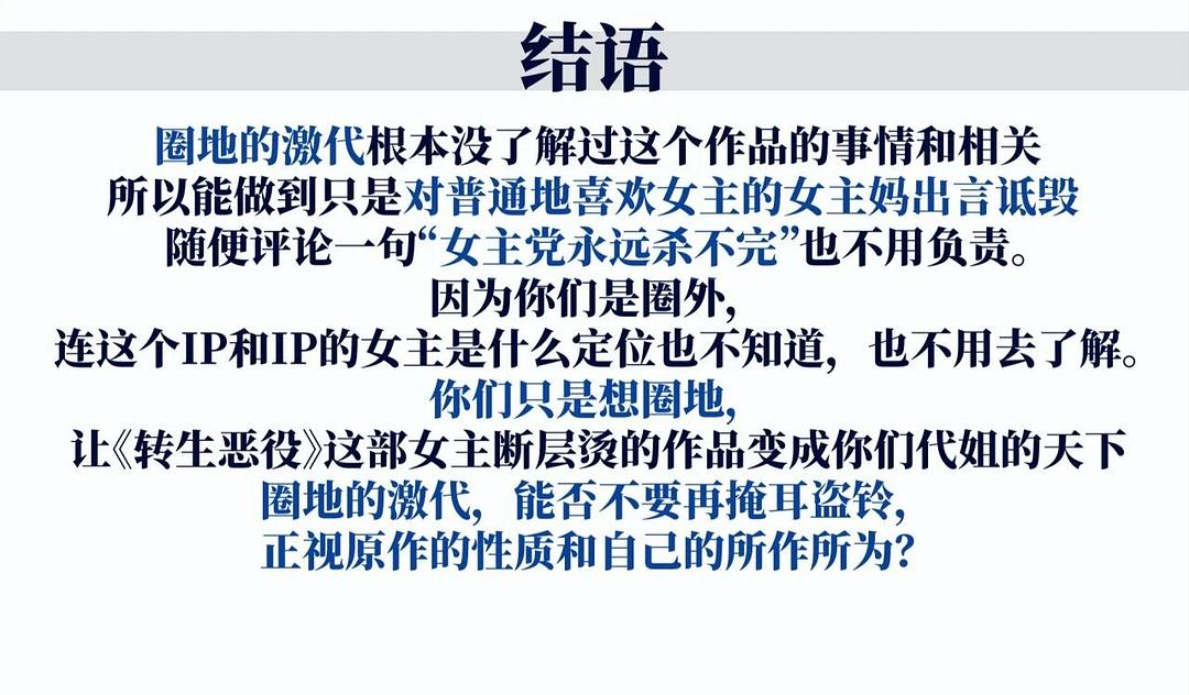 看女主越来越圣母白莲花的表现。我觉得这番现在真的需要一个真正的恶毒女配或男反派(最好是吴某凡那种类型)来提升一下女主的智商了。从第一季到现在观感真的是高开低走——所有人不是爱上了女主,就都是大好人对女主友善的一比。真就是把(原游戏)女主光环,强行架到了一个自认为恶毒女配的超级大女主身上,光环比原游戏女主的还亮还大。