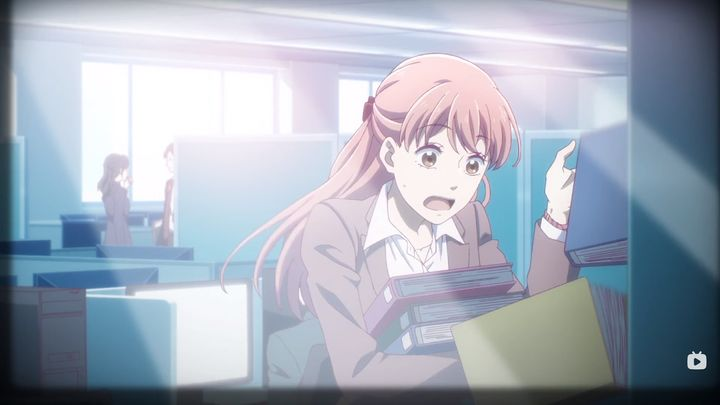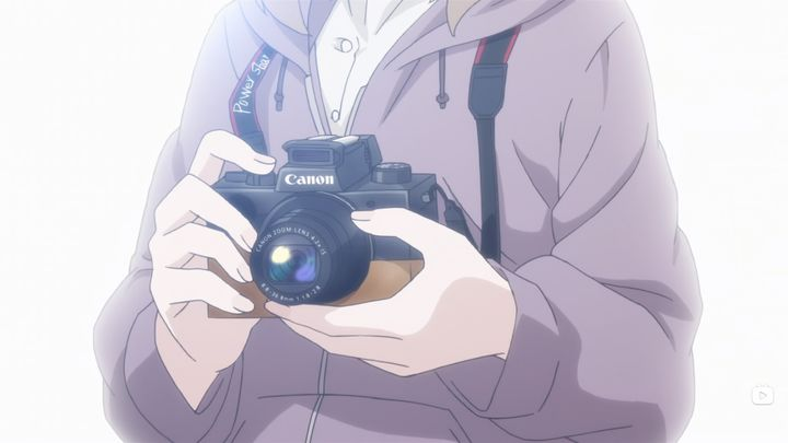 《Just Because!》里面的一个角色小宮恵那是摄影爱好者,因此从她的角色特点引申的媒介便是相机,看视频就会知道,这里她举起相机拍照的连续动作被几个她拍的照片的镜头给割开几段,接着后面这个镜头又做了一段相机拍摄的定格运动: