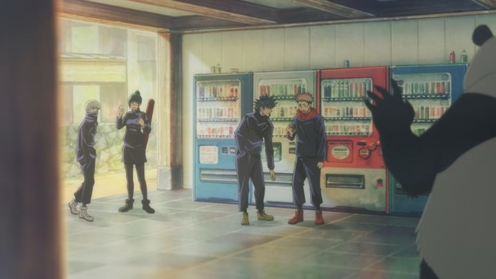 对我来说,最好的OP和ED安排是这样的,OP应该是对这部作品的主要想呈现给观众的内容(故事、角色、世界观)以及表现风格的一次默片式的编排展示,而ED就像是题外话,可以和正剧故事本身无关,可以是正剧中不存在的时空(比如《SSSS.古立特》的ED),总之,ED是更值得自由发挥的地方。《咒术回战》的ED1是极简风动画MV,是跟随音乐的;ED2便是这个“题外话”,它很好地呈现了《咒术回战》这个经常带有恐怖、沉重感的作品的另一面,关于少年漫画的那些“友情”,关于主角他们难以获得的日常,这就像是一种对诉求的温柔回应:既然他们在正剧里无法得到这一切,至少让他们在ED的另一个时空中获得也好。