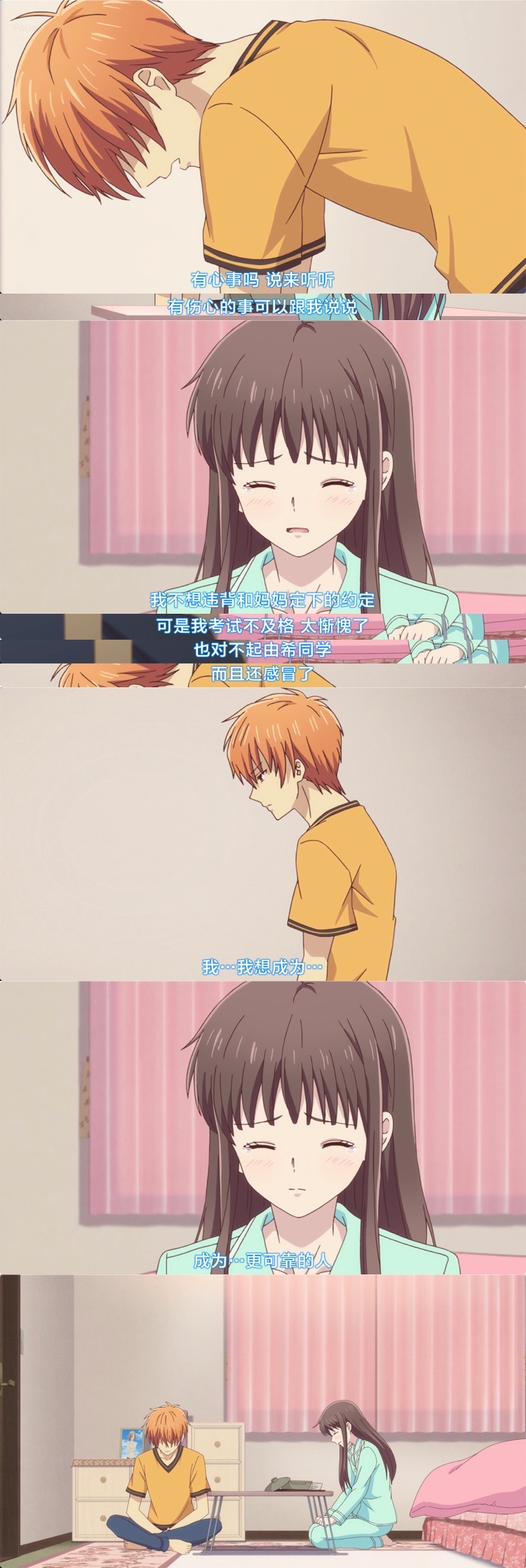 还有漫画更后面的剧情,动画大概要很久才会改编到那一话。小透向阿夹说起为什么自己说着别扭的敬语,说到她和妈妈之间「令人羡慕的羁绊」背后藏着的心计,以及她想救赎十二生肖的真正原因(涉嫌剧透漫画,这里就不细聊了)。