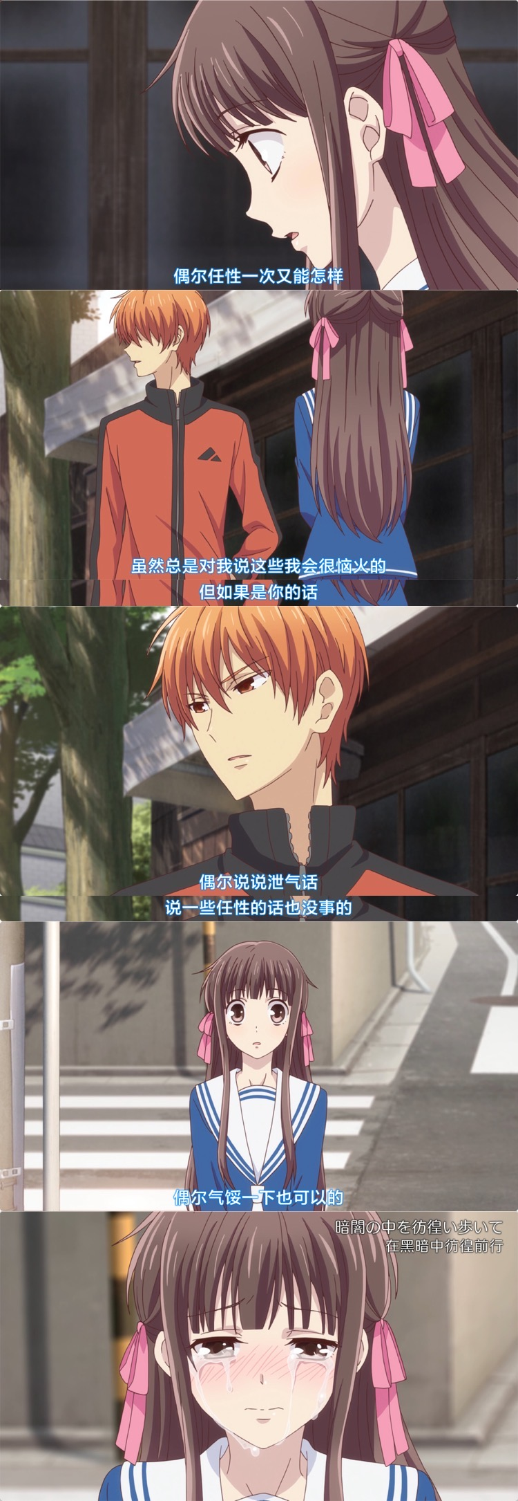 小时候喜欢一对cp比较靠直觉。十多年前第一次看《水果篮子》时,被小透抱着猫妖现形时的阿夹说的那段话感动得一塌糊涂,后来不死心地补完了漫画,时至今日也还保留着不减当年的感动。