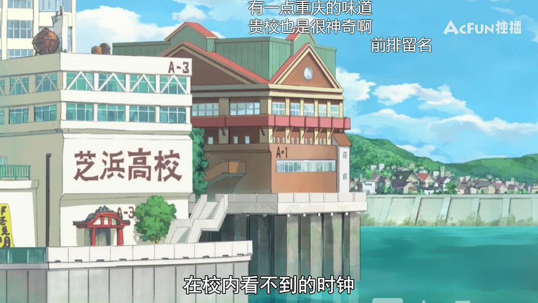 6分24秒,映像研里设定的学校——芝浜高校(浜,bāng),由于其过于魔幻,被网友戏称为“水上重庆”hhhh