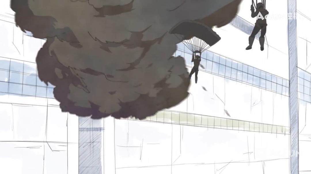 21分54秒,追赶凯丽一号的黑衣人,在飞行器撞上建筑物爆炸之前,成功跳伞逃过一劫。