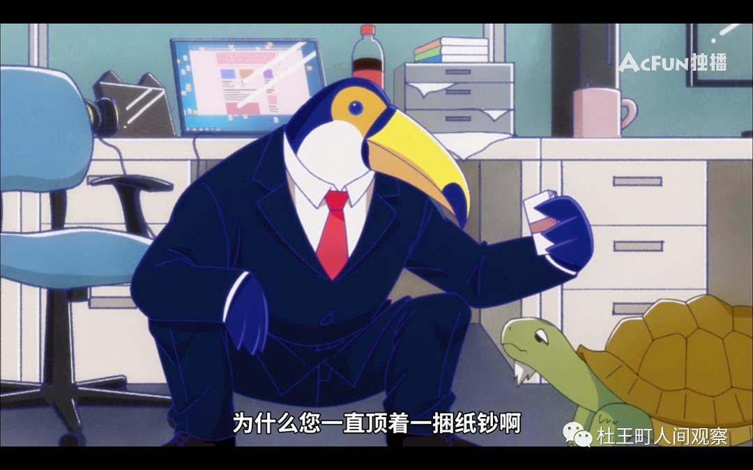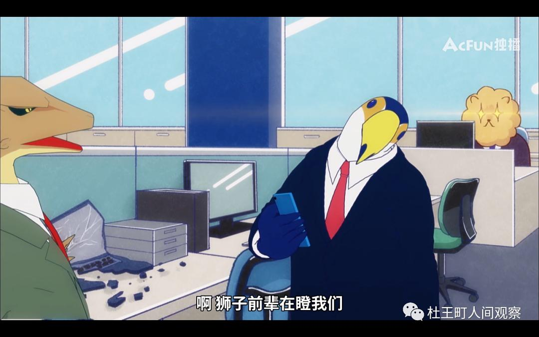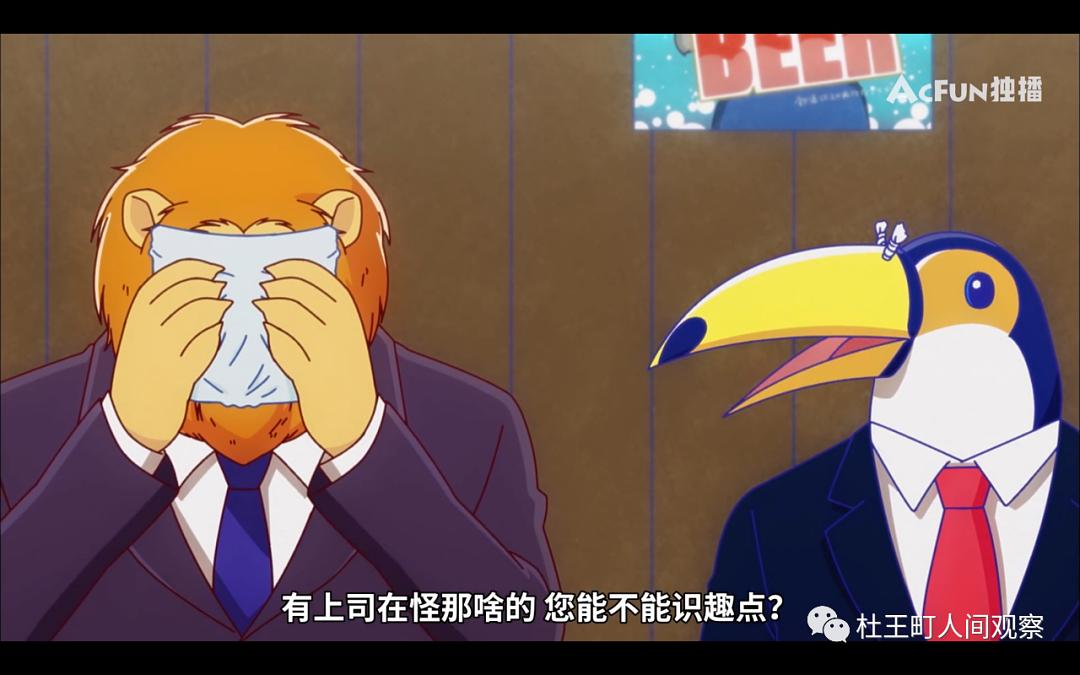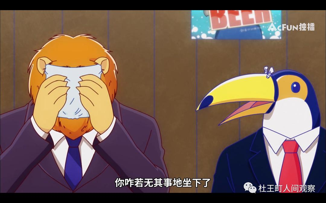说到这里你应该能明白,这不是一部靠着精良的制作和特效镜头取胜的动画。时不时出现的简陋背景和粗糙的3D建模掩盖不了《非洲动物上班族》最大的亮点:这部新番把现实中的「社畜形象」演活了。