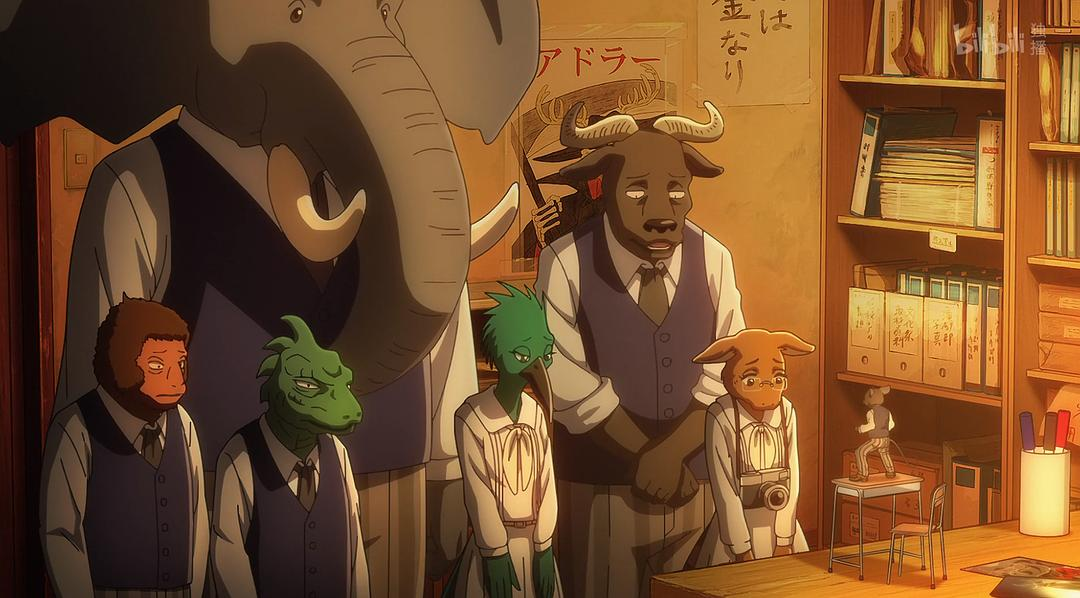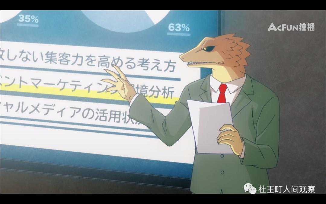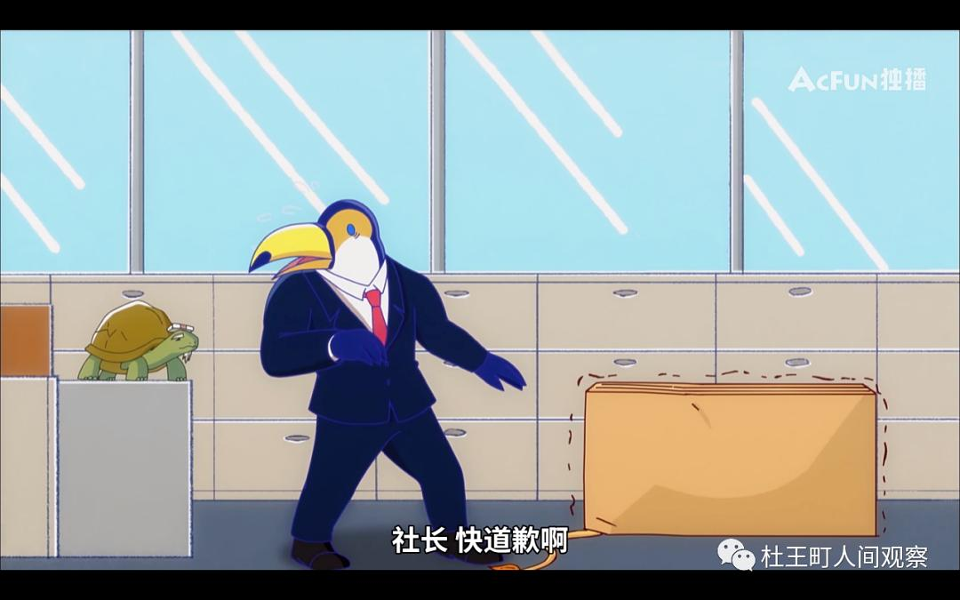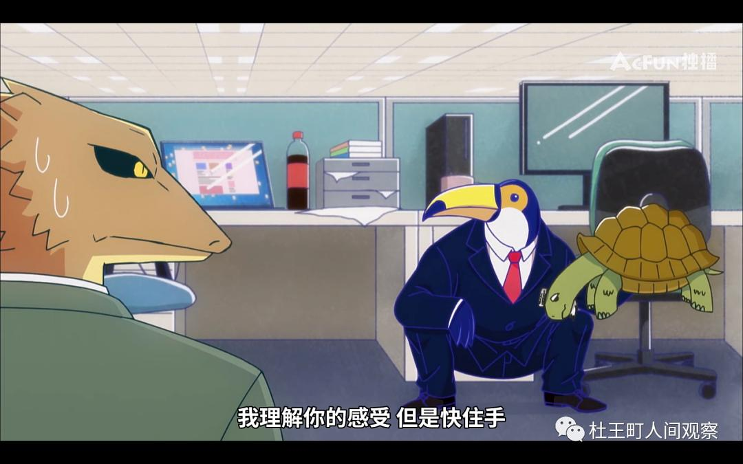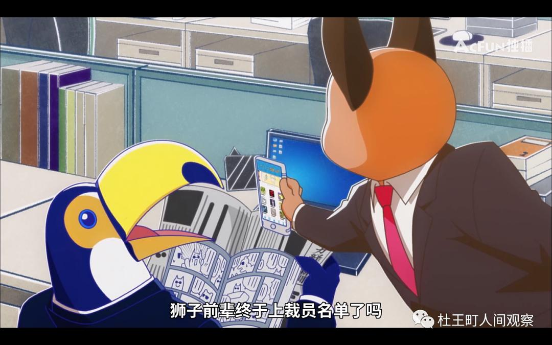 说到这里你应该能明白,这不是一部靠着精良的制作和特效镜头取胜的动画。时不时出现的简陋背景和粗糙的3D建模掩盖不了《非洲动物上班族》最大的亮点:这部新番把现实中的「社畜形象」演活了。