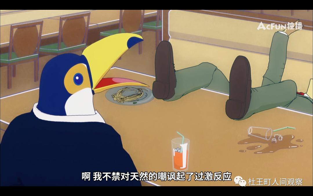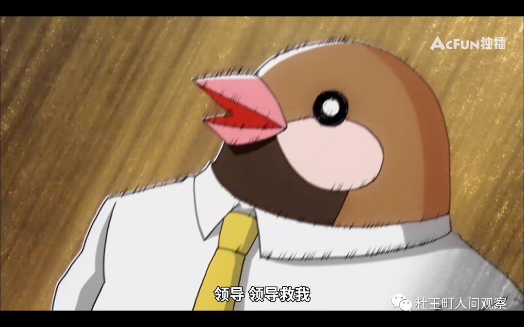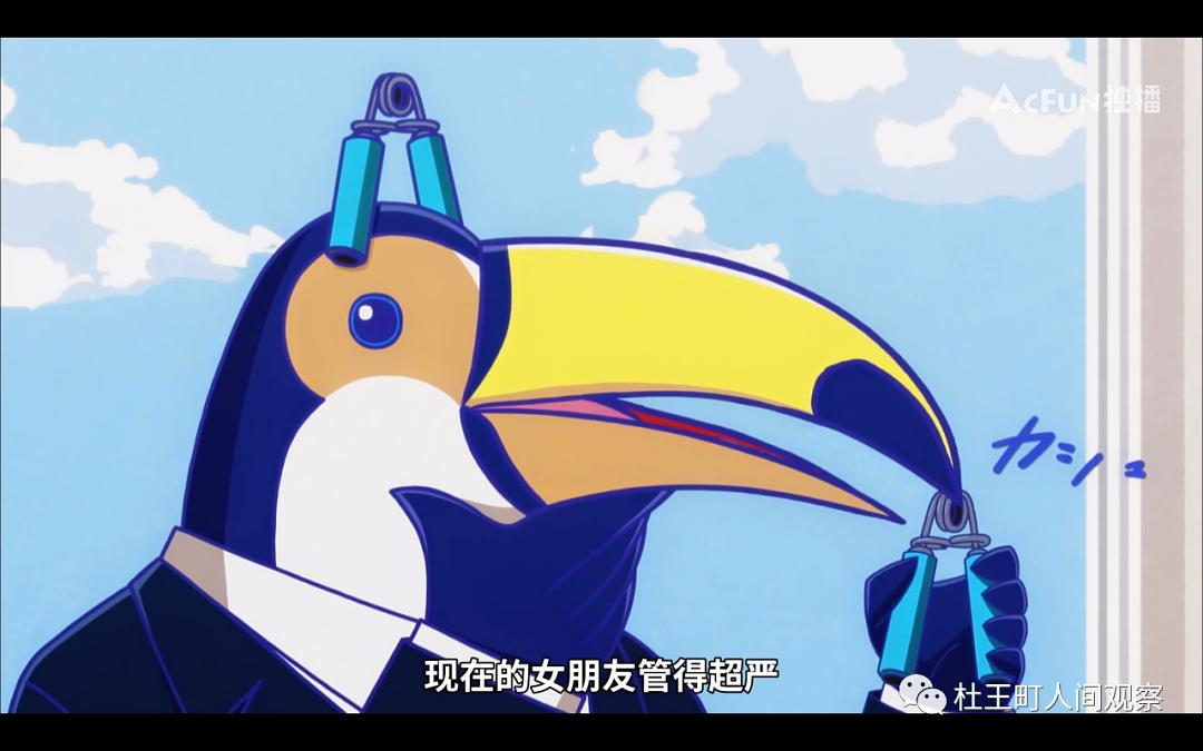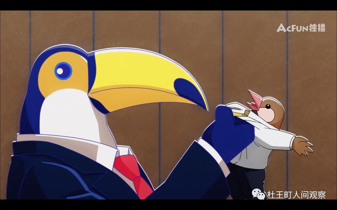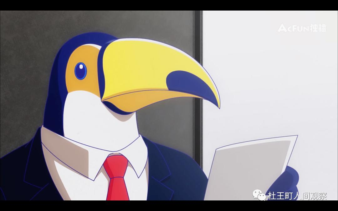 对于这部社畜拟人动画来说,角色塑造和办公室情景还原是主要看点。在这一点上,就不得不提本作塑造最成功、同时也是最贱的主角——巨嘴鸟(CV:下野纮)。