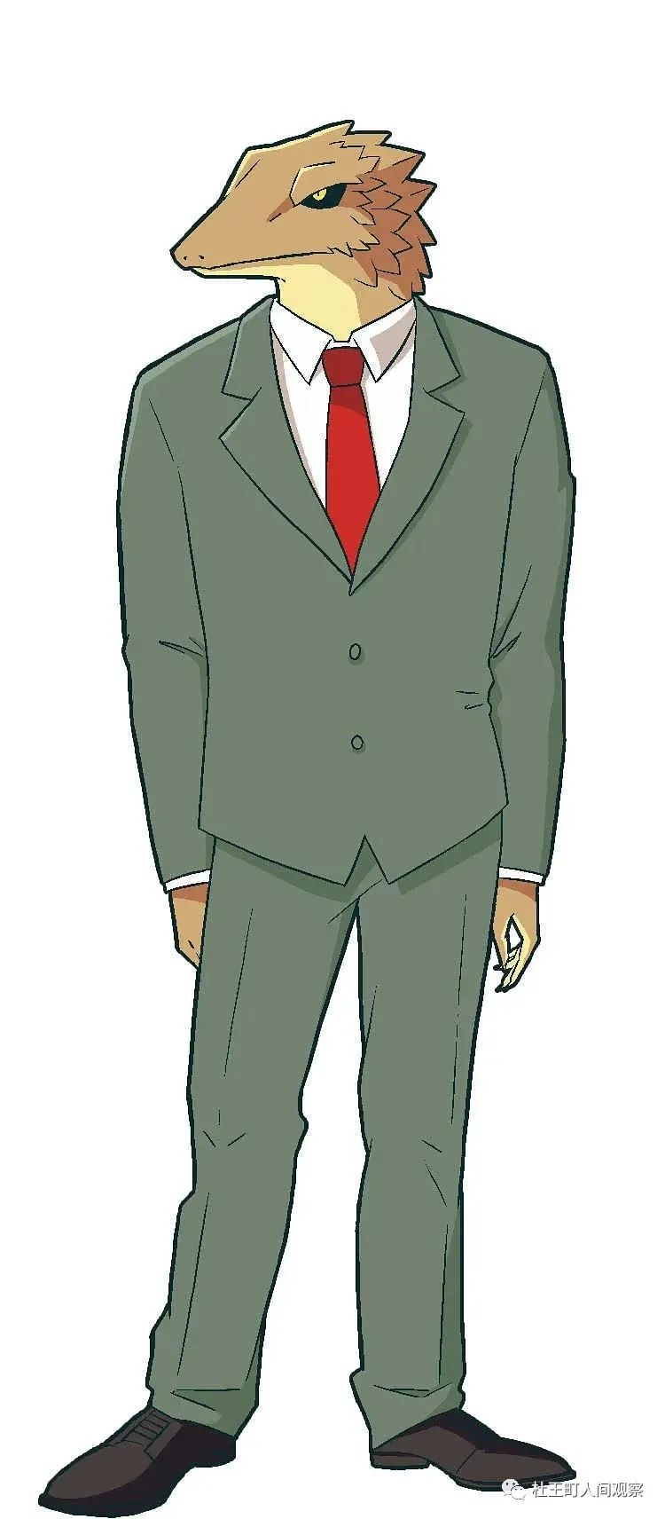 狮子是本作的第一男主角,是一个40代的课长,也是蜥蜴和巨嘴鸟的上司,官方公式照如↓所示: