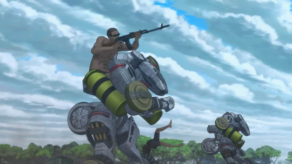 • 情节解析:n本集回顾了EXO机甲首次做为武器投入战斗的历史性时刻,背景是美帝不知为何介入卡宾达地区的