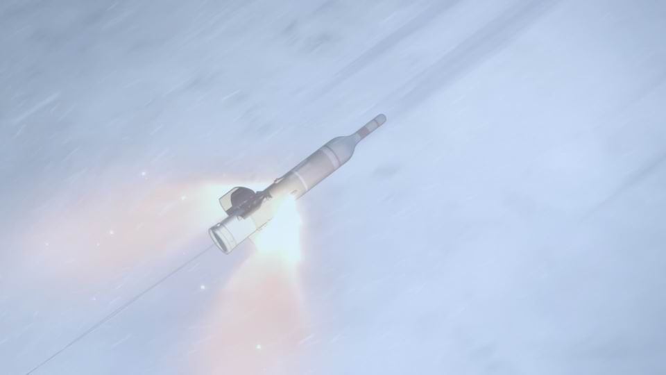 导弹发射瞬间,能看到尾部拖出的制导线和四个折叠稳定翼片。这种导弹是有线制导,其飞行过程中需射手将观瞄屏中的十字线稳定压在目标上,制导设备通过红外测角器计算出导弹与目标间的位置差,将飞行调整信号传输给导弹纠偏。