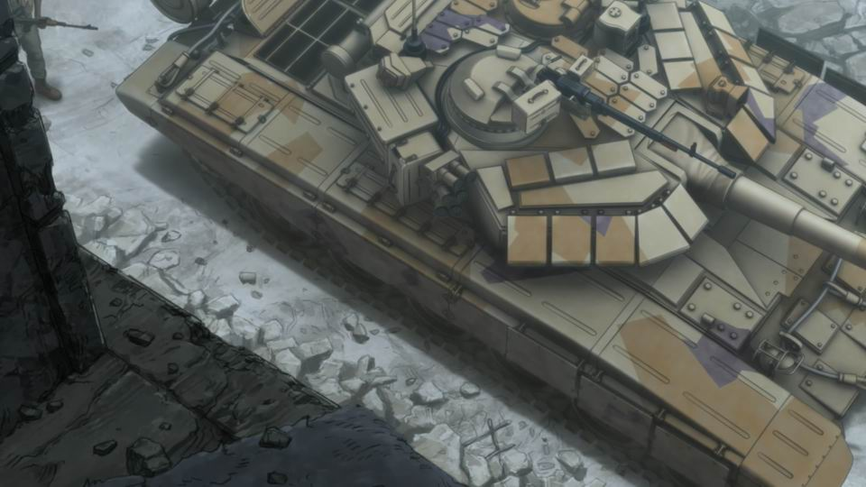 从这个角度看,政府军出动的是T-90型坦克,车身首上甲板、炮塔前侧和顶部都有爆炸反应装甲盒,可以抵御一下RPG类的破甲弹攻击。