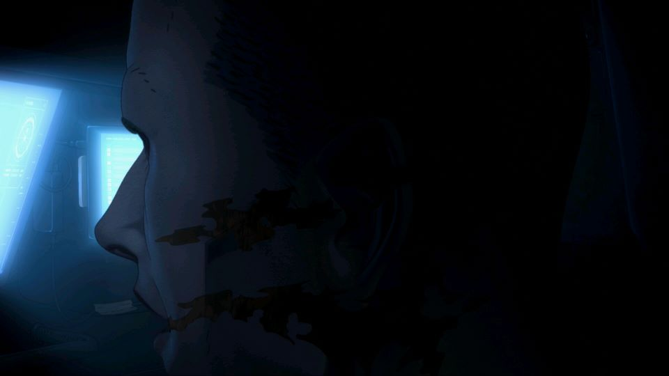 这最后一台也是带骷髅标志的机甲,在雪崩过后被宫岛发现座舱中空无一人,颇为诡异。包爸的想法是,这台机甲应该就是前两机不惜抢先开火,要竭力保护的机密之所在。之前说过三台机甲在开始撤退时,领头机甲有一个抬右臂指向,随后三机共同转向的场景。个人认为这有可能说明后两机是有人驾驶的,在逃亡紧张时刻,需要以最直观的视觉方式指挥。随后第二台被宫岛击倒的机甲在中弹时有一个护头动作,也说明当时坐舱内确实有人,才会在离头部很近的机枪塔中弹时产生这种再自然不过的反应。剩下的只能是大胆猜测了:有可能是某个人/组织/生命体发现了EXO机甲的隐藏功能(可遥控),并以此壮大力量,聚集追随者,准备以EXO机甲颠覆现有世界秩序。本集中这台带骷髅标志的遥控机甲,也许在两台有人乘坐机甲的护卫下,在这里进行训练或测试任务,不料被宫岛一行人撞破。在被撞击摔倒并遭雪崩掩埋后,遥控受损或被控制人放弃。