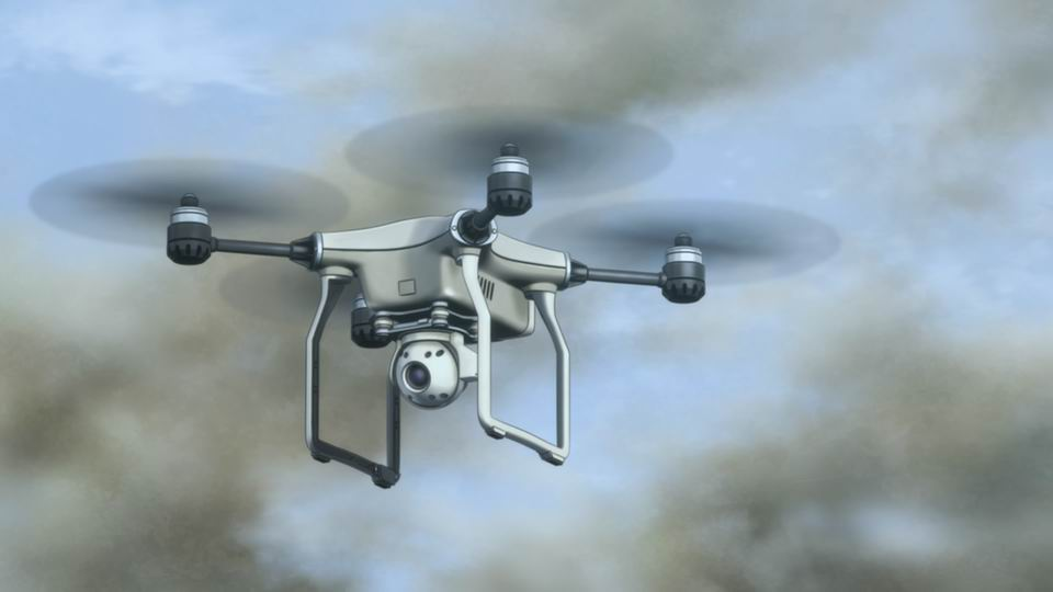 武装直升机使用机头的20毫米机炮向娃娃兵们开火,能看到抛出的大量弹壳倾斜而下。