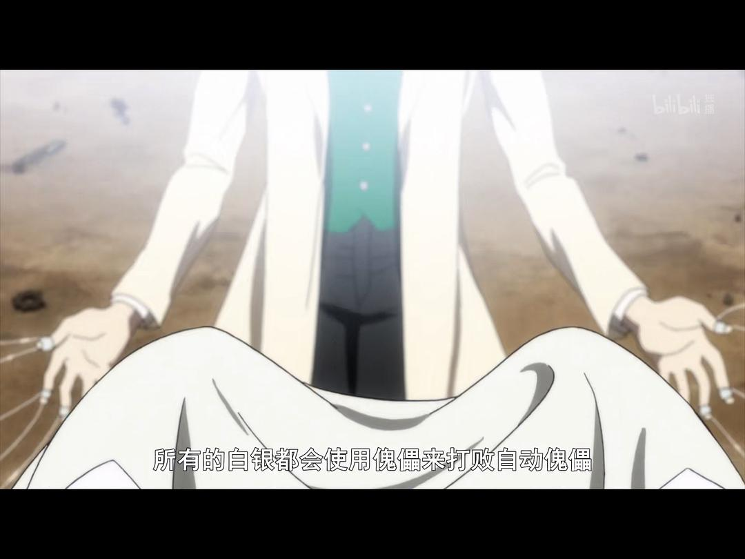 在街上被小胜笑容救下的鸣海一路保护被傀儡师追杀的继承大笔遗产的才贺家小少爷小胜。危急关头,伴随小胜一声大喊「白银」,女主从天而降,并从小胜的巨大旅行箱里释放出人偶「丑角」,操纵其打败了傀儡。