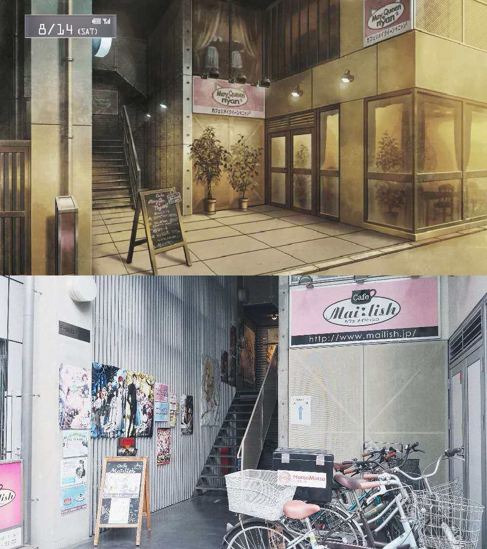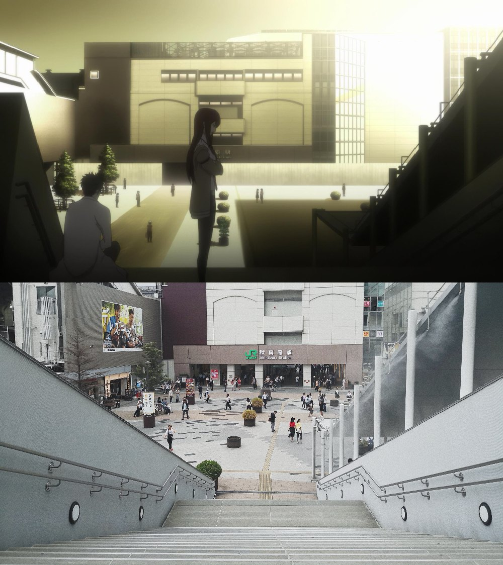 但更多的,这个地方是黄昏下伦太郎和紅莉栖谈话的地方,在最新一季里,紅莉栖也是在这个阶梯上找到了伦太郎。