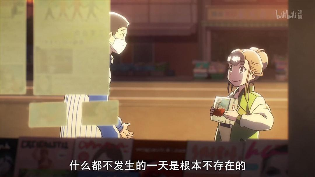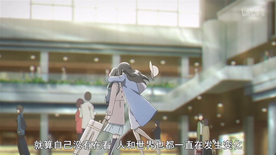 虽然只有一部还很不好说,但说不定是一种时风悄然转化的征兆。过往的动画主人公,尽是些不需要外界肯定就自动获得了肯定的人,他们所象征的,大概是在人与人汲汲营营的关系里,大家更向往的勇敢的裸露与不迎合他人依然被爱的强大的自我。而现在的主人公,则是生活在众人之中的,永远需要他人。或许看动画的我们,已经对于“人需要他人承认”这一点,接受的更理所应当,更不痛苦。