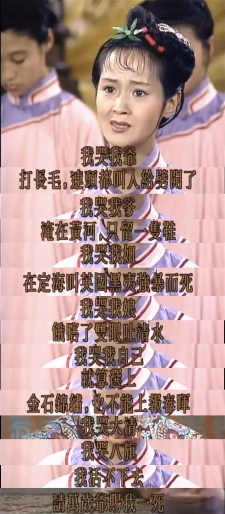t如论演员取悦于观众的外貌,同龄的四个男角色,咸丰、肃顺的饰演者翁家明、马景涛皆为琼瑶严选男演员,相貌自是出众,荣禄饰演者倪齐民作为本剧言情担当,也不能过于逊色。这三个演员又正当三十出头黄金时期。唯独亦䜣,其饰演者崔浩然,年龄已然奔四,客观来讲,即便与前三人同龄,样貌也稍逊之。而他却是饰演比前二者年龄更轻的角色,不仅在前二十集戏份与三人旗鼓相当,还要在后三十八集更为吃重。年长者扮嫩,貌平者戏长,搁哪部剧,都是对观众喜好的挑战。谁不好韶华貌美、谁不喜情生意动、谁不愿缱绻缠绵,谁想看一中年男子枯燥议政。而崔生却以自身气概风度、娴熟演技令不少观众折服喜爱。当年应无报道提及这一重要角色年龄不妥、外貌不妥。我幼时观看,并不记得演员其名,却对这角色深忆至今,对奕䜣这一史上众说纷纭的真实人物产生偏颇之情。而今再看,同屏中,他不及马景涛俊俏,却比他持重;不及翁家明性感,却比他端方。而青年荣禄,演员表演陷入传统古装言情套路,与丛珊的青年兰儿格格不入。反倒是丛珊与崔浩然的一场亭中对戏,当真是棋逢对手,进而不免令观众生出微妙遐想——当然也只能遐想。值得一提的是,翁家明的表现亦为上佳,他相貌出众却并无偶像包袱,纯当了激发观众多巴胺的妙用,演得令人又怜又恨。马景涛的肃顺,单论本剧角色,轻狂有余,厚重不足,并不符史上能与亲王一争锋芒、成为顾命之首的形象,然若与其同年所拍的琼瑶剧一并而论,则可谓很好展示了演绎的多样性。而崔浩然之于青年奕䜣,以略带传统戏剧色彩、稍显夸张的肢体语言起范,处理角色的尊贵气盛、桀骜不驯,弥补年龄上的不足,倒也另有一番风味。这一阶段情节跌宕,尤其咸丰退走承德后,变为双线叙事,恭王成为京城方面唯一戏眼,在请旨、签约、兄弟猜忌、火烧圆明园等重要情节中,故事的讲述技巧、演员沉浸式的表演令人感同身受、对情节推进欲罢不能。