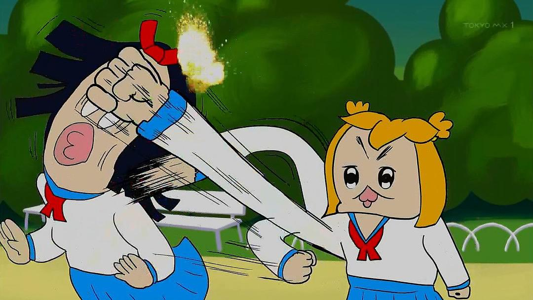 关于动画的形式,是要原原本本按照原作改编还是做原创的动画,首先得向公司上层汇报,召开企划会议。须藤直接拿着原作向他们说明,然而一开始并没有通过。大家看过原作后一脸懵逼,“这是个啥?”须藤为此向上级领导们说明了自己为什么要做这部的理由,就拿业界的例子吧,如今光盘已经卖不动了,于是就得改变先有的经济模式,利用网络配信、海外展开等手段。须藤表示周边好卖,如果能把《POP TEAM EPIC》作为KING RECORDS的IP,销路绝对行得通。须藤认为本作在POP子和PIPI美这两个角色本身就有着极大的卖点,就像《哆啦A梦》《蜡笔小新》《海螺小姐》那样,即使没看过原作没看过动画,光是看着画面就能理解说的是怎样的内容,那周边就能卖出去。以周边为主体的动画在现在看来还不多,但须藤表示这会是今后的方向,现在不做更待何时。然而须藤费了这么多口舌,还是没能通过…n