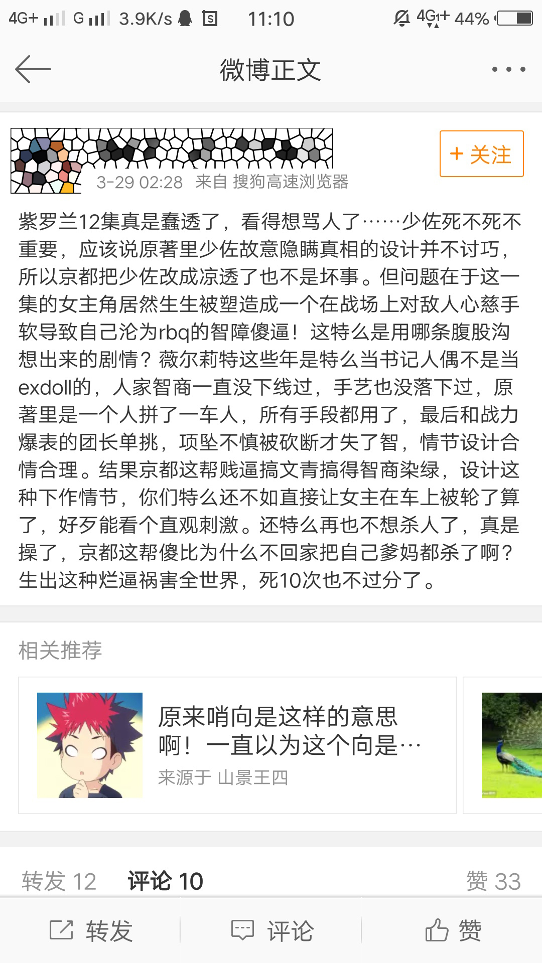 “京紫不好看,那帮傻逼就开始说是筛选观众,说文艺番小众。”