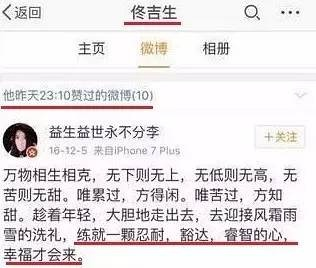 让人不由联想到陈思成出轨后,佟丽娅爸爸点赞的微博:有一颗忍耐的心,幸福才会来 。