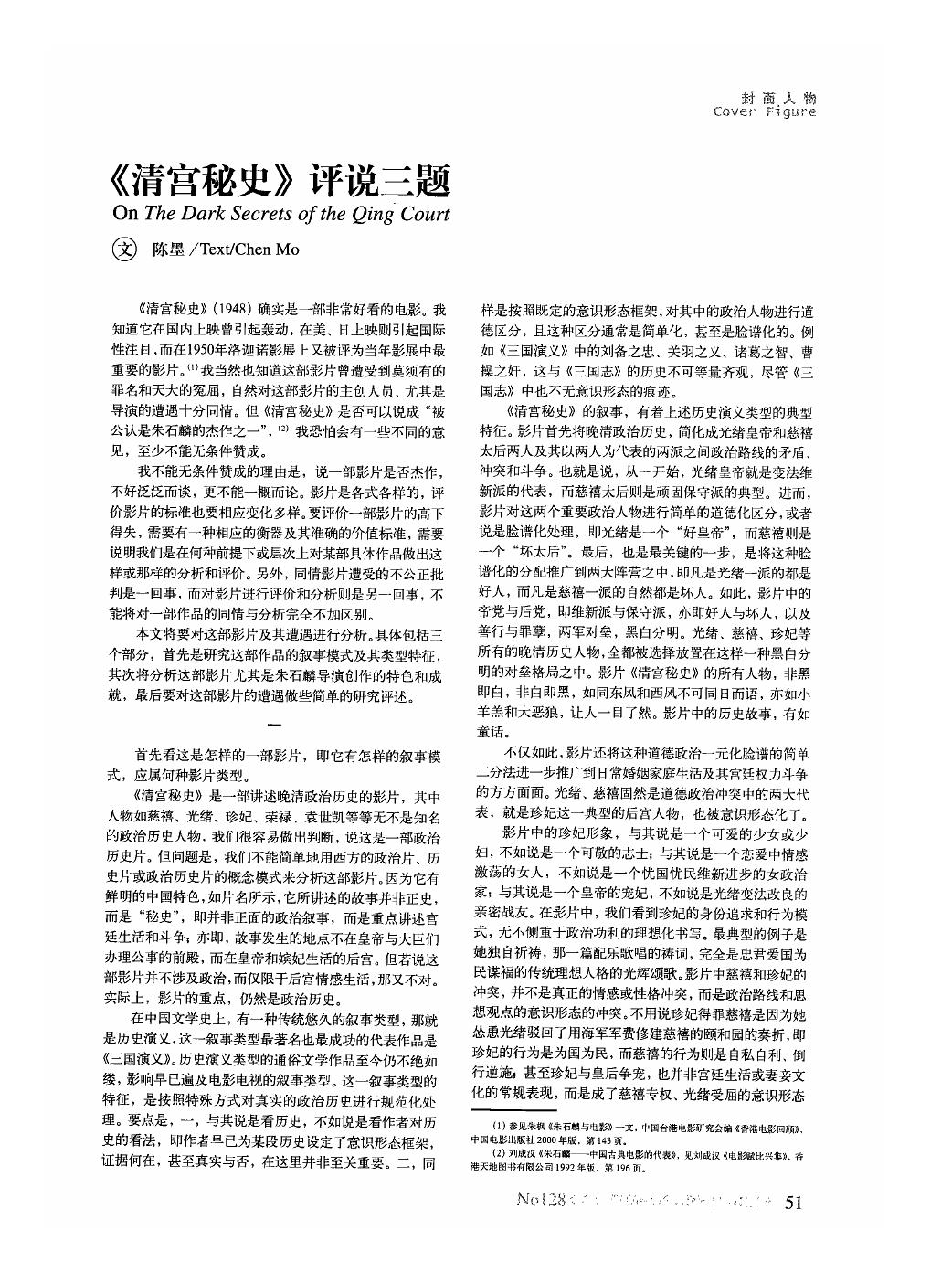 【作者简介】陈墨,男,汉族,1960年出生,安徽省望江县人,文学硕士,二级教授,中国传媒大学兼职博士研究生导师。现为中国电影艺术研究中心研究员、中国电影评论学会理事,中国台港电影研究会副会长,中国武侠文学学会副会长。主要从事中国电影史研究。著有《张艺谋电影论》、《刀光侠影蒙太奇——中国武侠电影论》、《半间斋影话——陈墨电影评论集》、《陈凯歌电影论》、《影坛旧踪》、《流莺春梦——费穆电影论》、《中国电影百年闪回》、《中国武侠电影史》、《中国电影十导演论》、《黄建新的电影世界——成人的游戏》、《张艺谋的电影世界——青春的呼喊》(新版)、《陈凯歌的电影世界——少年的诗篇》(新版)等。此外,还有《刘心武论》、《新武侠20家》等。