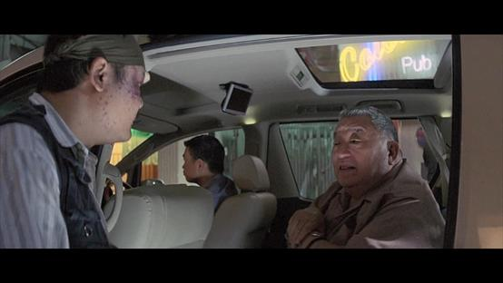 肥沙与马尾手下的冲突,是影片所设置的第二个细节部分。马尾的手下故意地用报复手段激怒了肥沙,而把他引到了过街通道里,打算仔细地修理他一顿。而没有想到的是肥沙自己踩到了蕉皮摔晕了自己,而对自己被打以及丢失枪械的过程一无所知。我们完全可以把这一部分的细节全部拆解开来,细细地与在同一时间之内所发生的命案相互牵连在一起。例如说:如果肥沙没有去追那些小混混,那么整个罪案的过程就几乎再与他没有任何瓜葛,而他的枪也不会这么轻易地丢掉,那么他在这个夜晚除了向重案组复述笔录之外,也就再也没有任何出场的必要了。而马尾在中刀了之后,就飞速地往街上跑去拦出租车,这样的细节就把整个罪案发生的现场火锅店丢在了戏外。假想他坚持留在火锅店而叫老板打电话去叫救护车的话,相信在事发之后老板与众多食客都会成为他的目击证人,而把肥沙在随后所遭到的嫌疑给轻易地抹掉的。当马尾自己驾驶着出租车,漫无目的地瞎闯时,他就已经完全地脱离了案发的第一现场——火锅店。而他的手下在修理完了肥沙之后,也正是往火锅店的方向跑去的,他们正好错过了与奄奄一息的马尾见面,当马尾的车一头扎在角落里时他们还在回过头来咒骂着。这样的细节又避免了另外的一个结局发生,就是如果让马尾的手下撞见了马尾,那么他们首先会考虑送马尾去医院,然后再找到马尾的父亲秃头来拿定主意,他们会直接选择去找大眼报私仇,是绝对不会想到与警方合作的。如果照这样情节发展下去,那么后来CID与重案组的出现也就完全没有任何必要了。