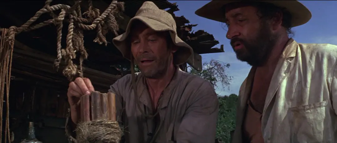 德国潜艇出人意料的从河里冒出来,攻击并击沉英国皇家海军的蒙特凯尔号舰,还击落了一架英国水上飞机。没想到德国人还不就此罢休,凶残的用高射机关炮击毁载有落水英国船员救生艇,用双联高射机关枪向落水的英国船员射击,导致全部英国水兵殉难,只有墨菲躲过一劫。墨菲永远忘不了那艘丑陋的德国潜艇和指挥屠杀英国水兵的艇长那狰狞面目。非洲当地的英国石油公司雇员路易·布雷赞把墨菲救了回来。那艘作恶多端的德国潜艇也从奥里诺科河溯河而上。