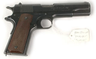 n n 也许是为了普洛姆利军士长(Basil Plumley)造硬朗古板的形象,影片中安排他总是使用一把M1911手枪(不是M1911A1),电影中的台词是说他不信任M16这种塑料小枪,但原著中从来没有提到这回事。M1911手枪虽然威力大,但毕竟手枪的作战距离有限的,这样的电影情节只是为了塑造普洛姆利军士长的个性。不过许多M79榴弹手或迫击炮手的自卫武器都只有一把.45口径手枪,在原著中就描述了几个美军士兵用.45手枪与突破防线的北越士兵战斗的事例。n