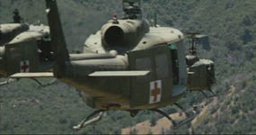 n 在1965年的德浪河谷战役中,美军使用的直升机是UH-1D,但电影中使用的是2年后才出现的UH-1H。为了增大载重量,因此H型换用功率更大的发动机,而D型与H型的外观区别就在发动机舱上。此外,在1965年时UH-1D装备武器系统是M3火箭发射架、M6机枪系统或M5榴弹发射器,而电影中却过早地出现了当时所没有的M21武器系统,虽然M134机枪早在1964年就已经在AC-47上试用了,但直到1967年才开始在直升机上使用。n n