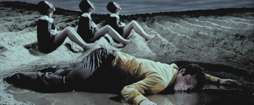 联邦侦探彼得诺瓦跟随凯瑟琳进入卡尔的内心世界,一坠进去就看到图中的画面。三个奇怪的短发女人张大嘴巴望向天空,看见彼得,转过头对他说了一些奇怪的话语又立即转回去继续望向天空。非常诡异的画面。