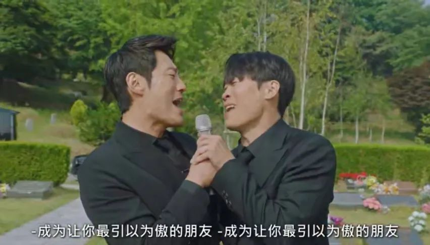 这段肢体搞笑满分,在坟墓前抢麦克风,不知道下一秒会打起来还是亲上去,两位演员微妙的火花实在是太有趣~