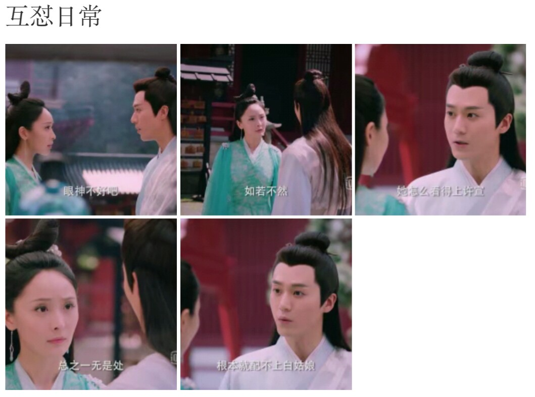 世事已经太过凄凉,剧里怎么还能全篇教做人呢?因此编剧团将全部剧情量划为四块,虐:日常:反派:甜=1:1:1:1。上文已经大概介绍完了前三个部分的精彩之处,此处再将甜饼单列出。恩,来我知你心,来看仙侠剧的都是为看小甜饼的嘛……挑几处来分享