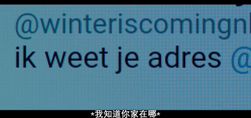 教科书一般的字幕组操作。这个推特的字体设计完全融入了影片的视觉设计当中。