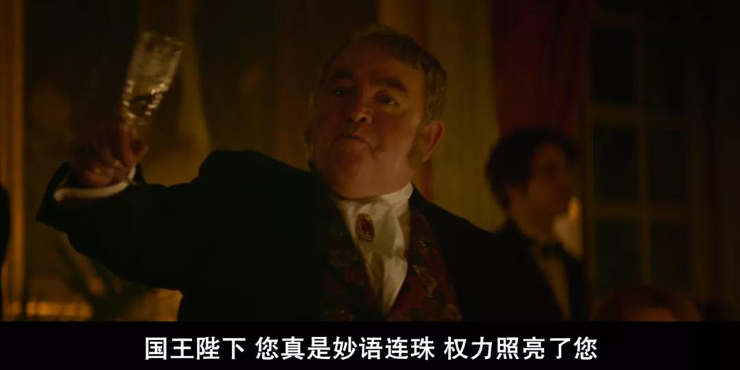 在一场明显是中世纪贵族的晚宴上,人们谈笑风生地恭维着国王。
