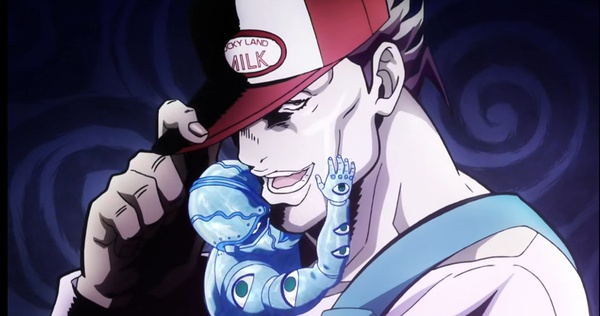 换句话说,角色也是人,离不开吃喝拉撒,饮食起居。而剧情的展开就是往看似普普通通周而复始的每一天里,一点点加入不同寻常的情节。如果说1~3部《JOJO》讲述的是远在天边的异乡传奇,那第4季则是眼皮子底下的日常琐事。他举例说明,安杰罗假如在之前3部里登场,仍旧是卑鄙无耻的混蛋,但也仅此而已。可是在本季里,观众在“暴徒随时可能会在身边出现”这样强烈的暗示下,体验感官恐怖之外的心理惊悚,因而能更加到位地诠释专属于荒木老师的审美癖好。