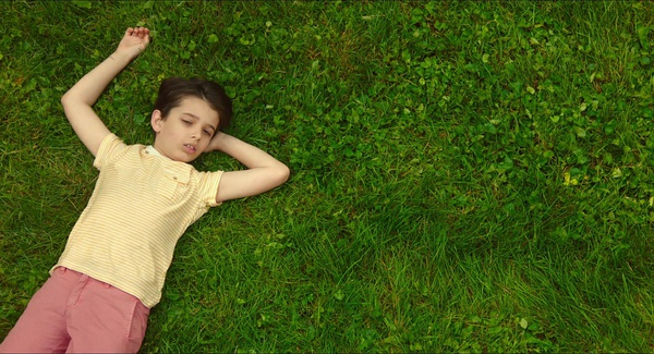 父母出门后和腊肠狗欢乐玩耍的男孩(唯一一次露出笑容)给狗吃了含巧克力的谷物棒,这下可闯了大祸——狗的呕吐物和排泄物把房间搞得一团糟,爸妈崩溃后直接把腊肠狗送去安乐死。在车上男孩再次与妈妈就生死的本质话题进行讨论,母亲谈到自己不相信上帝,“那你相信什么呢?”“真理、陪伴和爱”。呵呵,可真是讽刺!为清净给狗结扎编出强奸的说辞、不愿收拾烂摊子直接把狗一了百了,虚伪双标的大人在给自己甩锅撇麻烦方面真是花样繁多丑态尽显啊!那个出场时答应看管狗的爸爸在中段教育男孩要“让狗的意志屈服,那就是文明化”——这是社会对人洗脑规训的微缩体现,父母对小孩不也如此驯养!而且颇有意味的是,在第一片段中狗是没有名字的,她全程被直呼作“腊肠狗”,说明并未被当作家庭成员,只是个“局外狗”而已。这一细节导演在前作《黑马》中也曾借男主之口直接提出评论过。