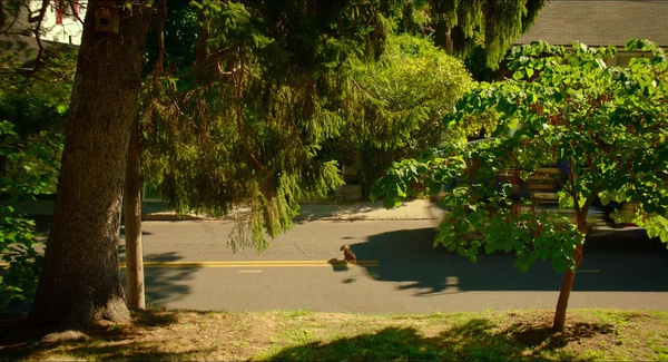 第二段,小孩的父亲就像个当兵的(希特勒)式的,要让狗有“人格”,整日的将狗关在笼子里,母亲带狗去做绝育手术接着一路的哄骗,还把欧洲恐怖分子与强奸的梗给用上了,可能暗指母亲也是满嘴胡说八道。后来小孩给狗吃了坚果巧克力(狗不能吃巧克力),结果狗拉稀(德彪西的月光曲,真是飙稀了),说明家长并没有教育小孩养狗的注意事项而只是一味的想将狗“训”得遵从人的习惯。小孩去医院抽血回来路上明显脸色和精神都变差,再加上母亲说明狗的下场,估计旧病复发只是时间问题。再有就是这住宅满满的后现代主义风格,可住在这房子里的两夫妻却都不是什么善男信女。