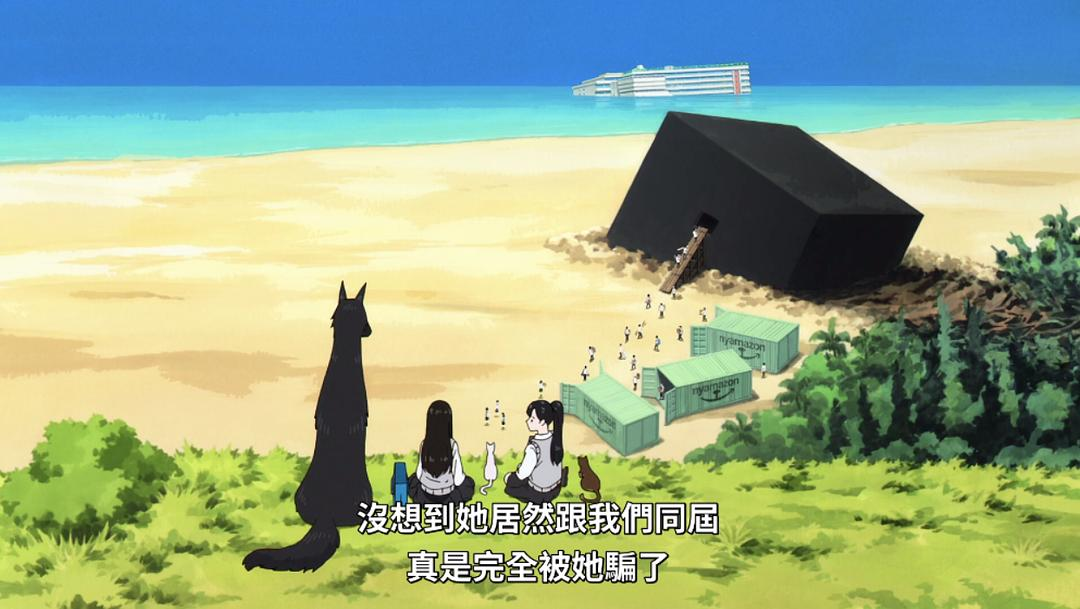 为了顺应规则,拉吉达尼制定了货币,这也是对应人类发明货币的寓言,资本主义的浪潮裹挟着消费主义的前进,世界尽头的小岛也不能幸免于难——有趣的小彩蛋是,如果你扫描了动画中的二维码会出现HYO-RUY-COIN也就是货币的名字。